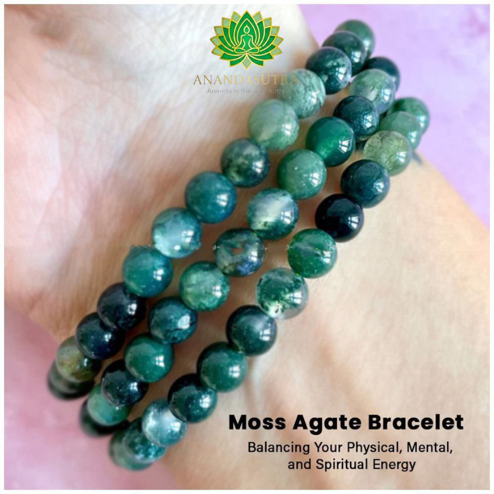 Energized Moss Agate bracelet: promotes growth, abundance, and connection with nature's vitality, infused with potent energy.