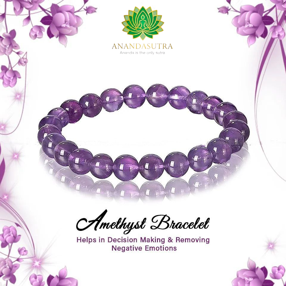 Elegant bracelet adorned with calming amethyst stones, radiating tranquility and spiritual healing vibes.