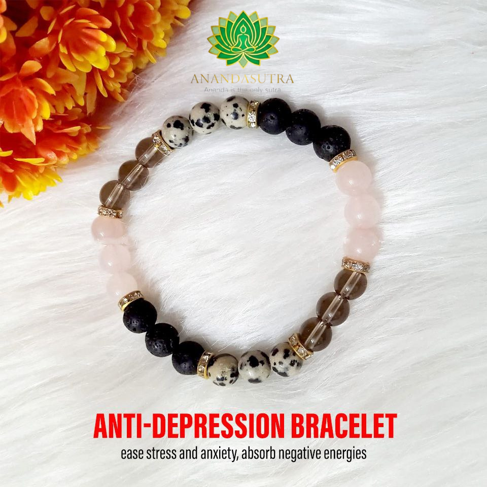 Empowering bracelet crafted with healing stones to alleviate depression, fostering positivity and emotional balance for everyday well-being.