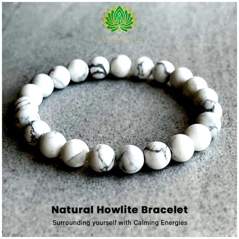 Chic bracelet featuring natural Howlite stones, promoting calmness, awareness, and emotional healing for inner peace and balance.