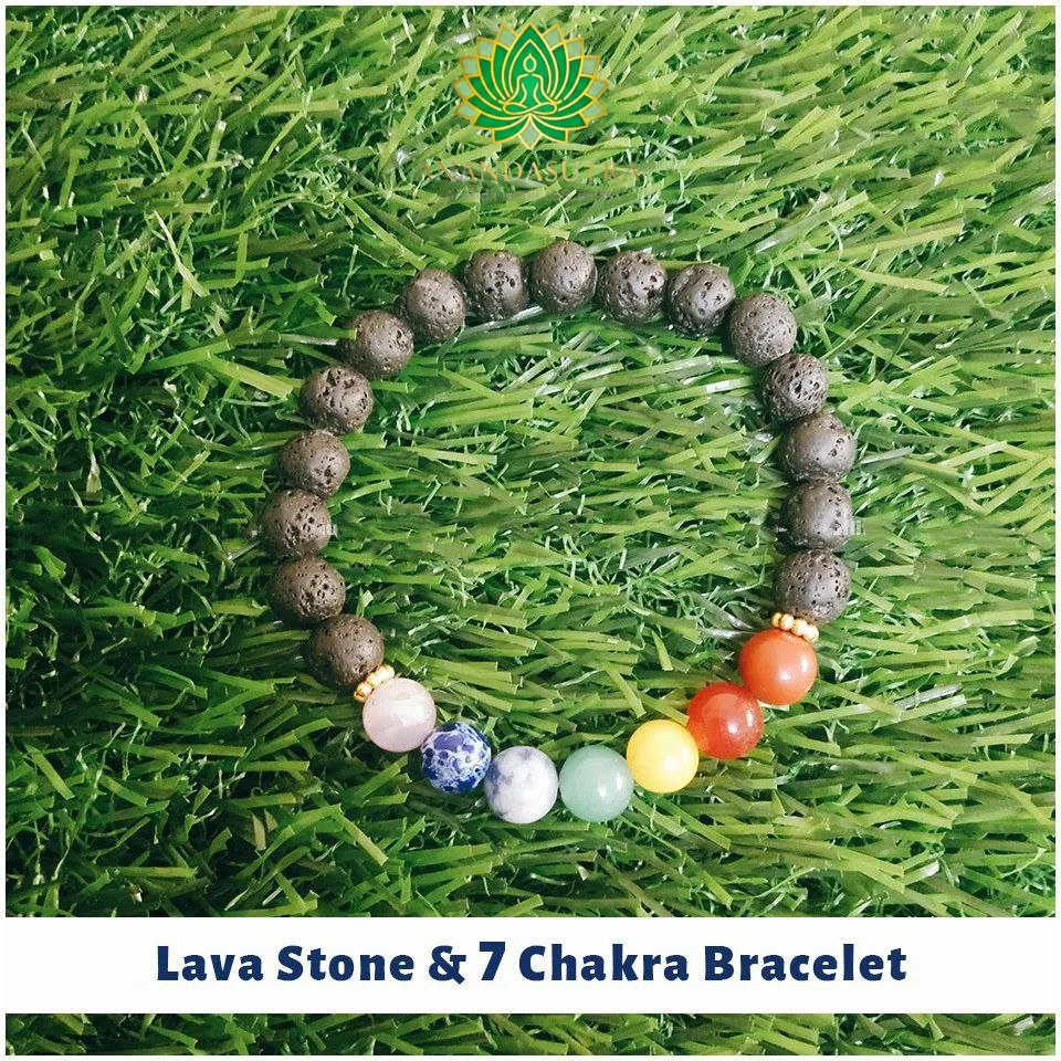 Chic bracelet featuring lava stones and seven chakra beads, balancing energies and promoting spiritual alignment for holistic well-being.