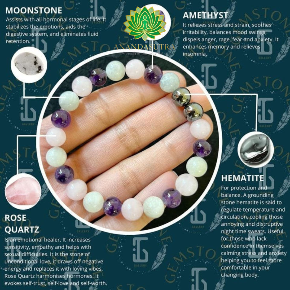 crafted to support hormonal balance and wellness, promoting comfort and vitality with natural healing stones.