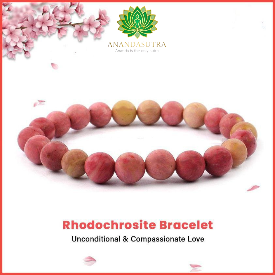 Radiant natural rhodochrosite bracelet: embodies love, compassion, and harmony, elegantly crafted to adorn your wrist with timeless beauty.