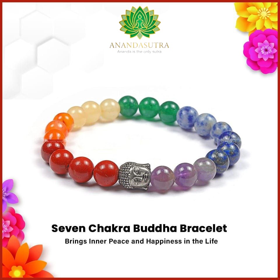 Stylish bracelet featuring 7 chakra stones and a serene Buddha charm, promoting balance and mindfulness